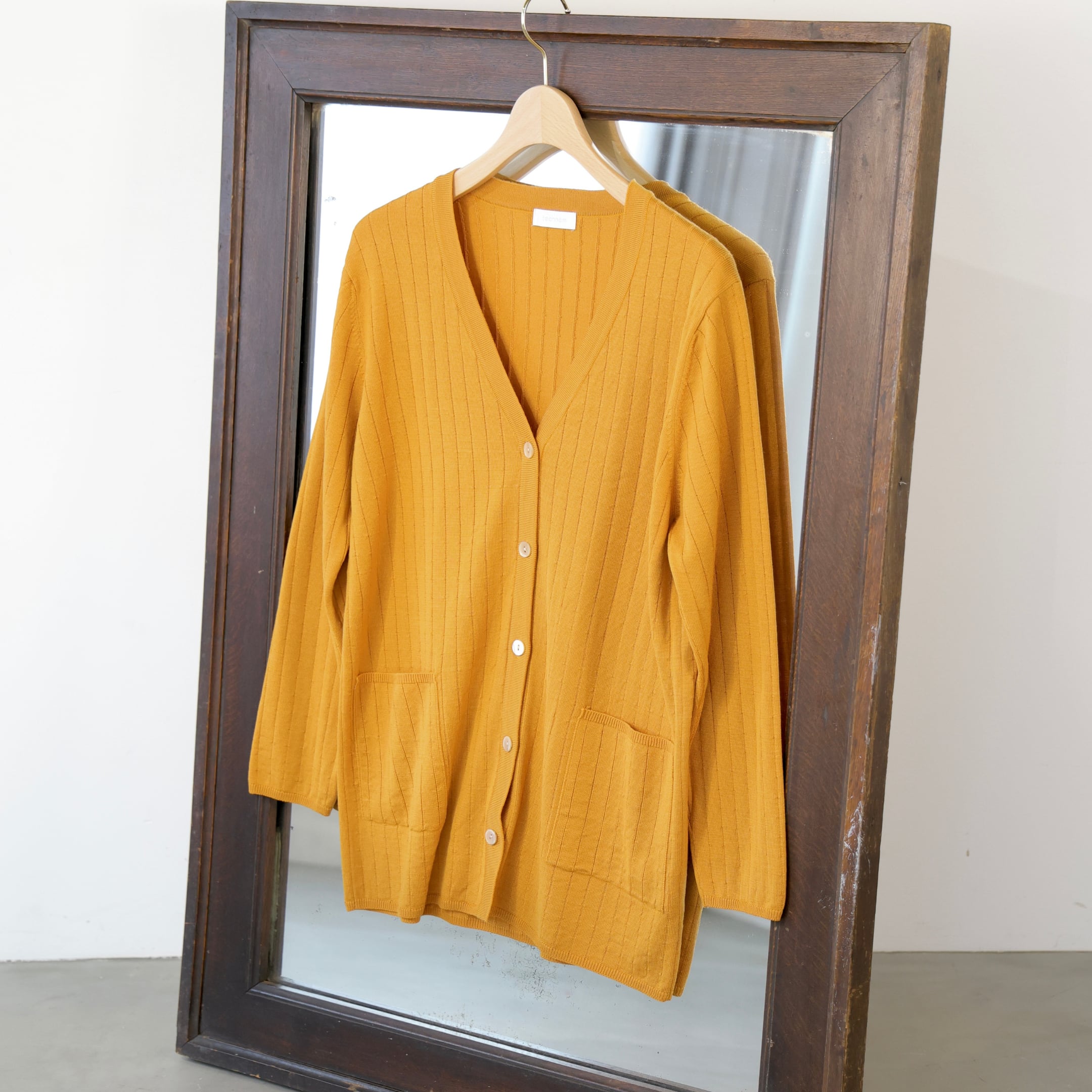 【無縫製で叶える、しなやかなラウンドネックニット】 ホールガーメント製法により縫い目がなく、素肌に心地よく馴染みます。 すっきりとしたラウンドネックとほどよいフィット感のリブ編みが、上品さと動きやすさを両立。 春先から秋口まで、オンにもオフにも幅広く活躍します。 着る人に寄り添うものづくりを目指す大阪市内の都市型ニット工場で編み立てられた逸品です。 【天然染料100%の彩り】 自然界の複雑な色が重なり合った、化学染料では表現できないやわらかさと奥行きのある色合いが特徴です。 研究を経て天然染料特有の色落ちや色移りを抑え、日常でも心地よく纏える贅沢な仕上がりとなりました。 時の流れと共に色は穏やかに変化し、“あなただけの一着”へと育っていきます。 天然染料の詳細について▹https://note.com/mitejima_chem/n/n305a73c1f9ef 【高級メリノウール“VICTORIA”使用】 世界的に高評価を受けるイタリア・ビエラヤーン社のオーストラリア産エクストラ・ファイン・メリノウール(19.5μ)を100%使用。 シルクのような光沢と、肌を優しく包み込むなめらかな風合いが、上質なひとときを演出します。 【毛玉を気にせず長く愛せる】 食品にも使えるやさしい成分をもとにした独自の加工技術で、“毛玉”ができにくく、美しい表情を長く保ちます。 お手入れも簡単で、時を経てもなお愛し続けられる一着として日常に寄り添います。 毛玉防止加工の詳細について▹https://note.com/mitejima_chem/n/n1f168e768a6f _____ ■ カラー/サイズ ・カラー ホワイト/ラックダイピンク/コガネバナイエロー/ログウッドブラック ・サイズ F ■ 素材/製造国 ・素材 ウール100% ・製造国 日本 ■ お手入れ/取り扱い注意事項 お手入れ方法につきましては以下URLを必ずご確認ください。 https://technem.official.ec/p/00002 ■ 発送・注文に関する情報や注意事項 ・ご注文いただいた商品は、通常5営業日以内に発送いたします。配送状況については、発送完了後にお知らせいたしますので、安心してお待ちください。 ■ その他の情報や注意事項 ・モニターによって実際の商品と色が異なって見える場合がございます。 ・商品に関するご質問や詳細については、ショップのお問い合わせからお気軽にご連絡ください。心よりお待ちしております。