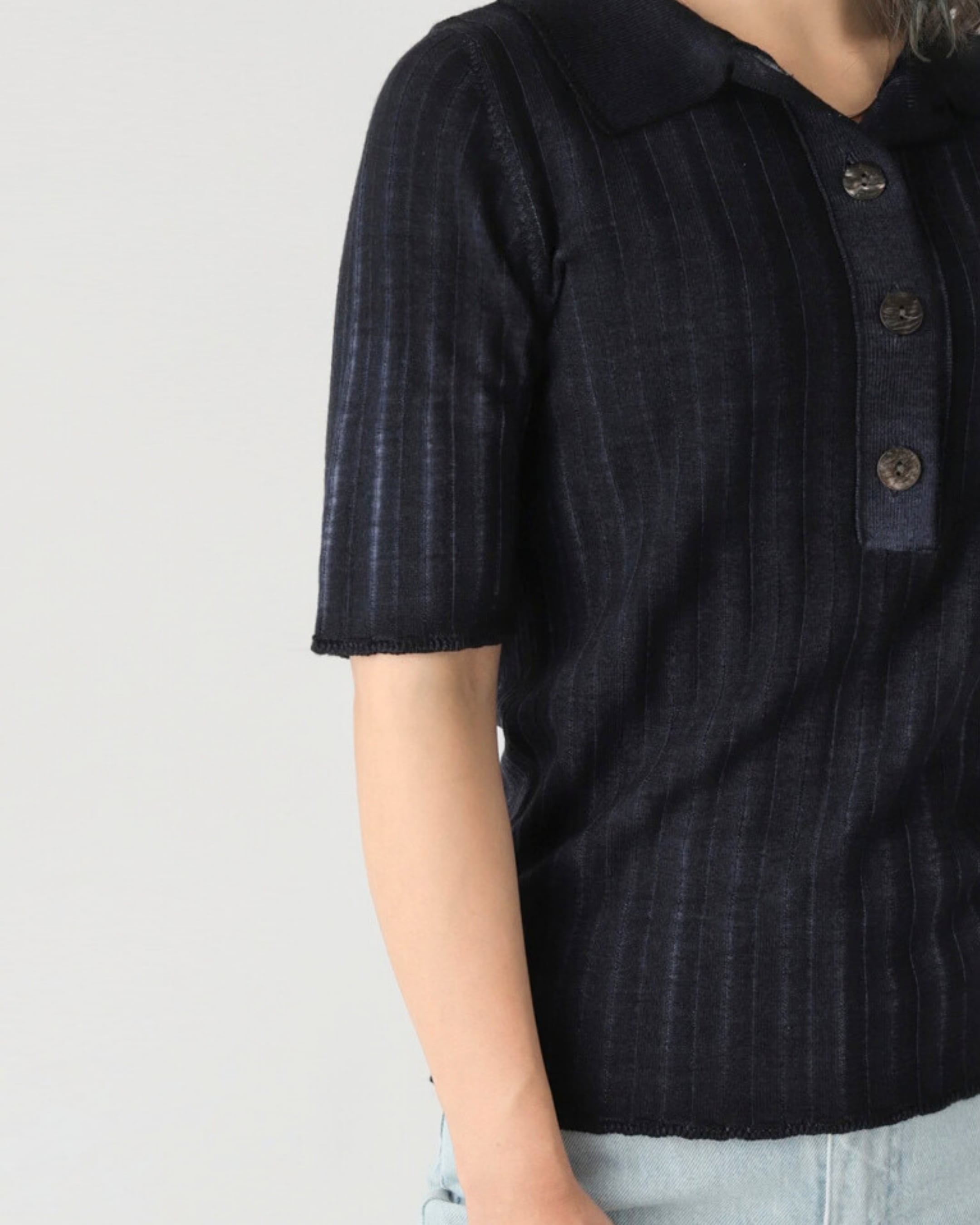 【洗練されたニットポロ】 ワイドリブの編地とフロントボタンがすっきりとした縦のラインを描き、体を自然に美しく見せてくれます。 長めの袖丈は、腕まわりをほどよくカバー。デニムと合わせてカジュアルに。スラックスやフレアスカートと合わせてキレイめに。シンプルながらも上品なポロデザインは、幅広いシーンで活躍します。 ニットの産地である大阪・泉州地区で編み立てから縫製までを行った逸品です。 【奥行きのあるヴィンテージ風カラー】 染色には、鮮やな色合いが得られる酸性染料を使用。 酸性染料のゆっくりと染まっていく特性を活かした、富山工場独自の染色方法「スノー加工」を施すことで、奥行きのあるヴィンテージ風の色合いを実現。(Black、Navy) 大人の余裕を漂わせる深みのある表情をお楽しみいただけます。 流行に左右されず、日常にシックに寄り添う一着として、長く愛されるデザインです。 【高級メリノウール“VICTORIA”使用】 世界的に高評価を受けるイタリア・ビエラヤーン社のオーストラリア産エクストラ・ファイン・メリノウール(19.5μ)を100%使用。 シルクのような光沢と、肌を優しく包み込むなめらかな風合いが、上質なひとときを演出します。 【毛玉を気にせず長く愛せる】 食品にも使えるやさしい成分をもとにした独自の加工技術で、“毛玉”ができにくく、美しい表情を長く保ちます。 お手入れも簡単で、時を経てもなお愛し続けられる一着として日常に寄り添います。 毛玉防止加工の詳細について▹https://note.com/mitejima_chem/n/n1f168e768a6f ------------------------------------- ■ カラー/サイズ ・カラー オーツ/ホワイト/オレンジ/ネイビー/スノーネイビー/ブラック/スノーブラック ・サイズ F ■ 素材/製造国 ・素材 ウール100% ・製造国 日本 ■ お手入れ/取り扱い注意事項 ・お手入れはネットに入れておしゃれ着洗剤を使用、デリケートモードでのお洗濯をおすすめします。洗濯機での洗浄を避け、形を整えて陰干ししてください。 ■ 発送・注文に関する情報や注意事項 ・ご注文いただいた商品は、通常5営業日以内に発送いたします。配送状況は、発送完了後にお知らせいたしますので、ご安心ください。 ■ その他の情報や注意事項 ・モニターによって実際の商品と色が異なって見える場合がございます。 ・商品に関するご質問や詳細については、ショップのお問い合わせからお気軽にご連絡ください。心よりお待ちしております。