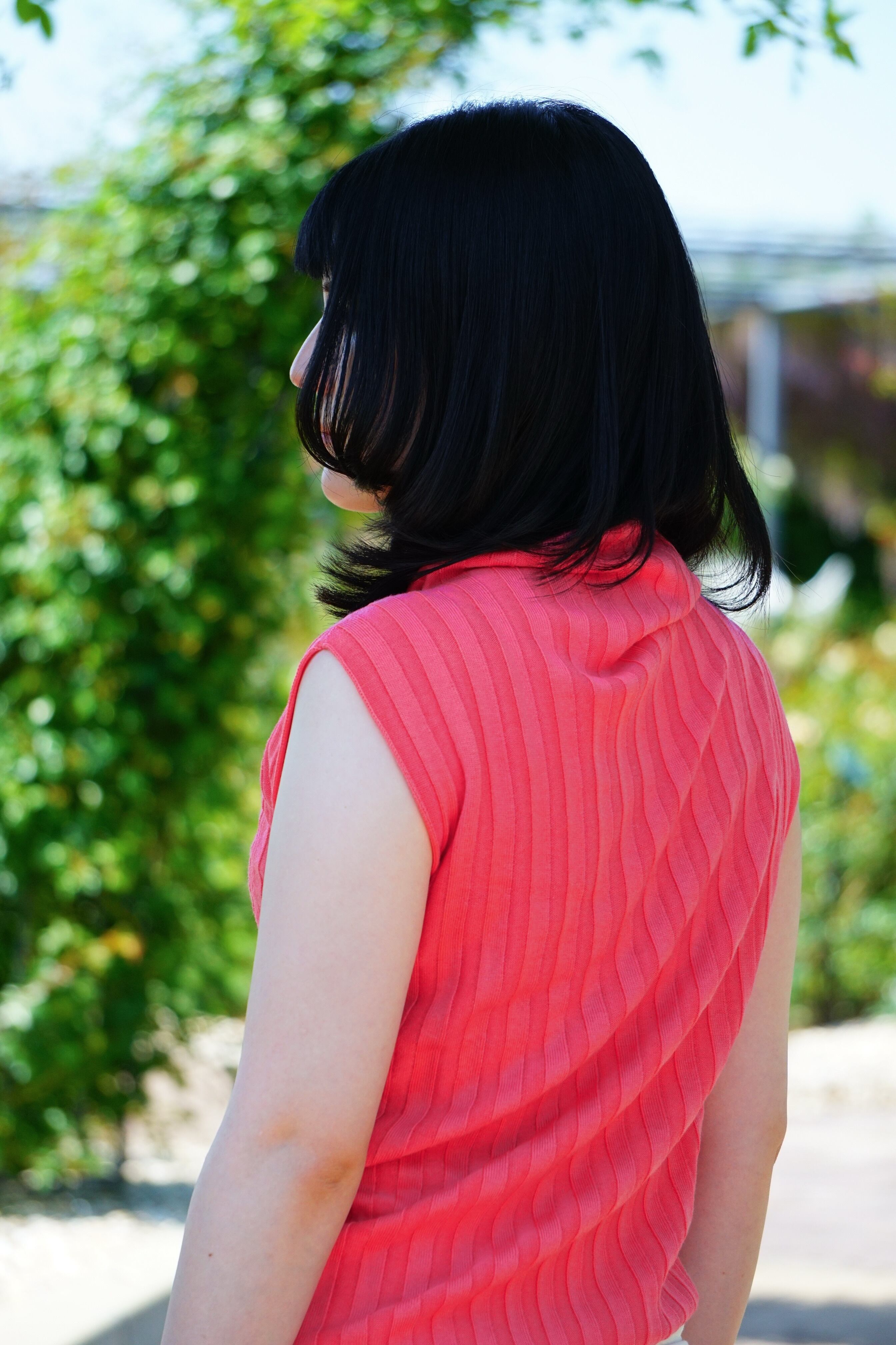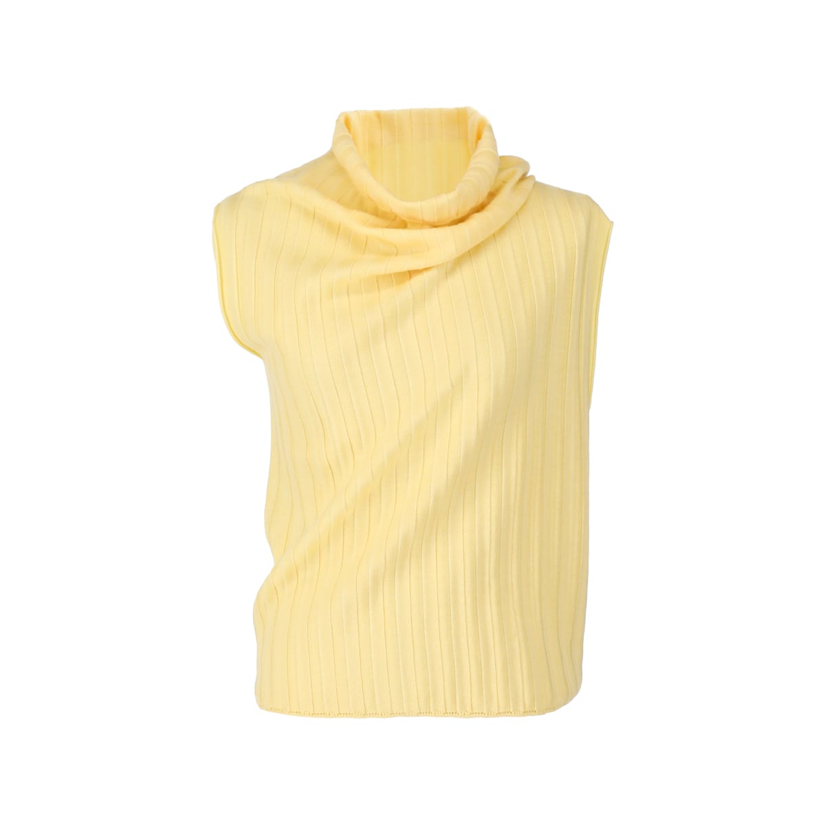 【111-15002】ワイドリブ オフタートルノースリーブニット